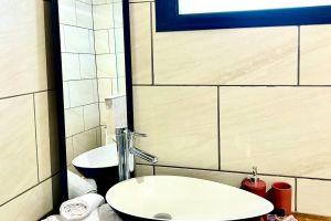 In den Zimmern befinden sich ein Bett (160 x 200 cm), ein Bad mit Dusche und WC, ein Fernseher und eine Klimaanlage.