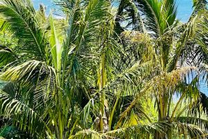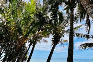 Im 1. Stock dagegen gibt es eine große Terrasse mit Blick auf die Palmen und das Meer.