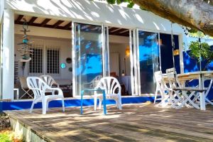 Im Freien, unter dem wunderschönen Baum "Raisin de mer" auf der Holzterrasse können Sie ebenfalls essen oder sich entspannen.