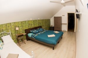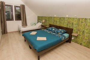 Das dritte Zimmer hat drei Betten: ein Bett 90 x 200 und ein Doppelbett 160 x 200. Allerdings muss man hier aus dem Zimmer über den Flur wenn man ins Bad oder zur Toilette möchte (die aber ausschließlich zu diesem Zimmer gehören).