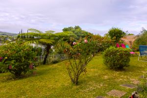 Im großen Garten befindet sich rechts vom Haus der beheizte Swimmingpool und Sie haben einen sehr schönen Blick bis zum Meer oder in die Berge. Zum Entspannen stehen Ihnen Liegestühle zur Verfügung und auf der Terrasse wird evtl. auch das Frühstück/Essen serviert.