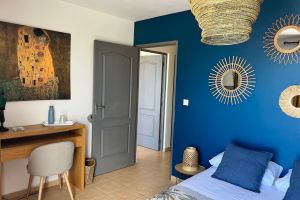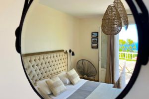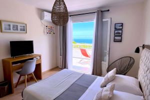 Im Obergeschoß des Hauses befinden sich die zwei hübschen Zimmer Galabé + Tafia. Jedes Zimmer hat den Zugang zur Terrasse die wiederum einen genialen Blick zur Küste bietet. Auf der Terrasse sind Liegestühle und hier oben genießen Sie Intimität und Ruhe. Jedes Zimmer verfügt über ein Bett (160 cm) und eine Klimaanlage. In einem Zimmer gibt es eine Kommode und einen Fernseher, im anderen einen offenen Kleiderschrank. Für beide Zimmer zusammen steht ein tolles, großes Badezimmer mit italienischer Dusche zur Verfügung. Möchten Sie die Waschmaschine nutzen so ist dies gegen eine kleine Gebühr von 5 € möglich.