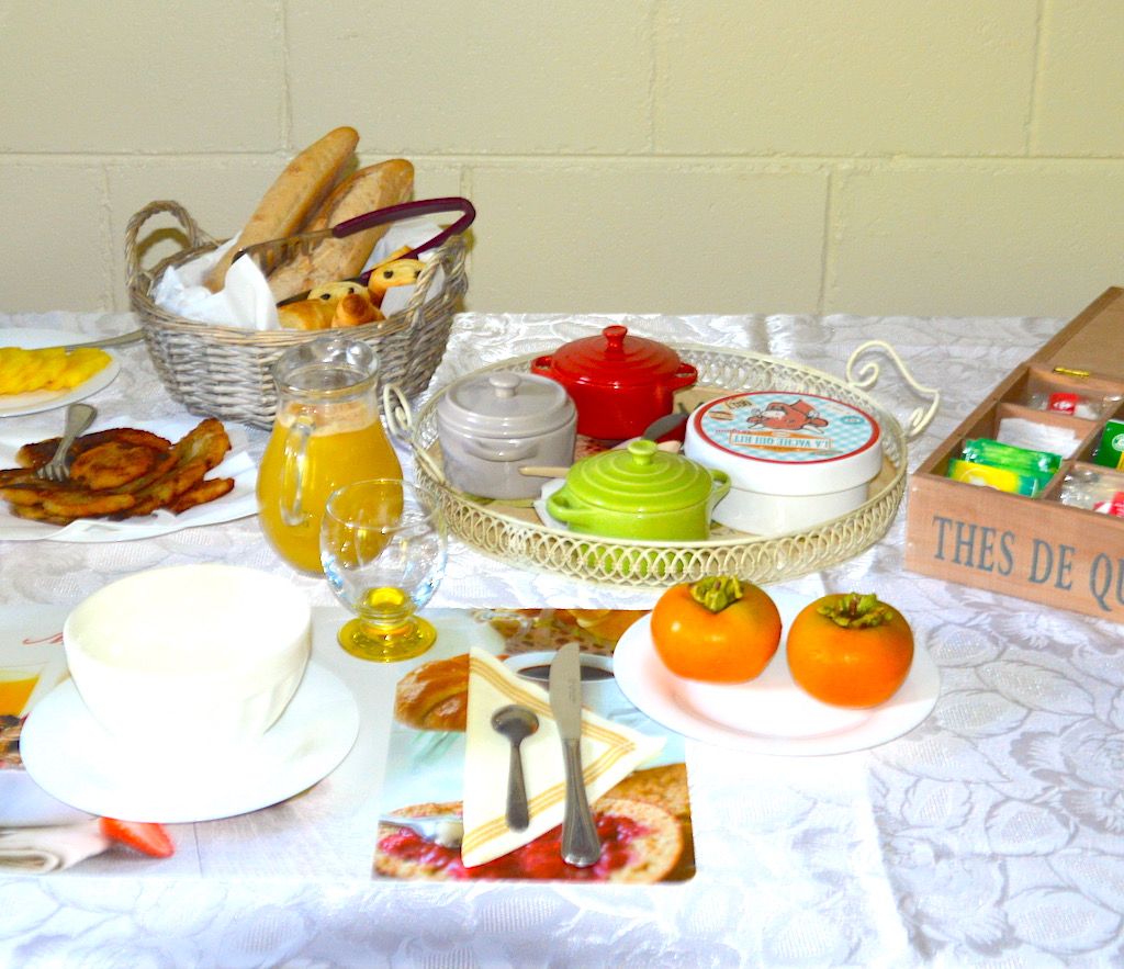 Gite des Agrumes: bei Familie Begue erwartete uns der Luxus, einen eigenen Holzpavillion für uns alleine zu haben. 4 davon stehen ja zur Verfügung in einem liebevoll gepflegeten, wundervollen Garten. Madame Begue ließ uns nach einer kurzen Einweisung jeder Tages- und Nachtzeit Zugang zum Gelände, ein großzügiger Parkplatz hinter dem sicher verschlossenen Tor ist vorhanden. Das Frühstück im Gemeinschaftsraum war reichlich und es gab auch schon erstmals köstliche Passionsfrüchte und selbstgemachte tropische Marmeladen.