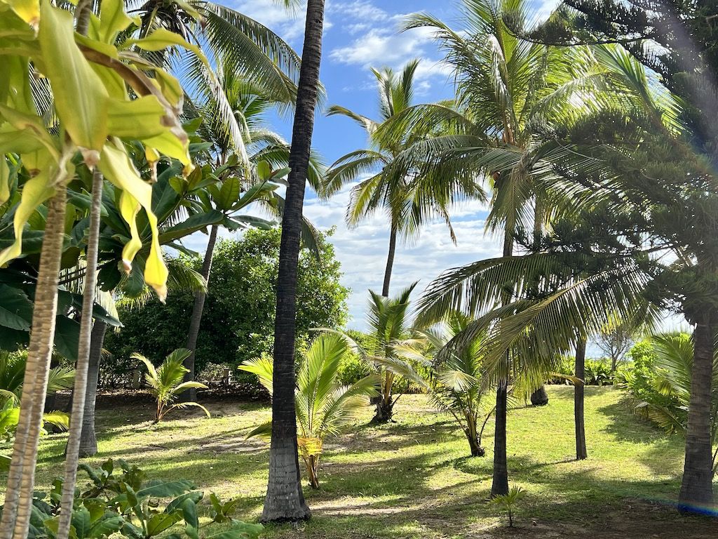 Der große Garten mit Bäumen, Sträuchern und Palmen wird vom Strand durch einen Zaun getrennt. Man hat direkten Zugang und das Baden direkt vor dem Haus ist möglich. Sie können sehr gut Schnorcheln, die Lagune ist durch ein Riff geschützt.