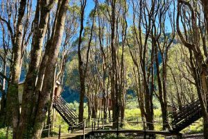 Sehr beeindruckend fanden wir die Kanopea Forest Lodge. Wir kamen bei strömendem Regen dort an, was natürlich nicht so toll war und trotzdem war es besonders. Die Holzhäuschen sind mit viel