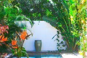 Sie blicken rund ums Haus in den Garten bzw. auf den kleinen Pool.