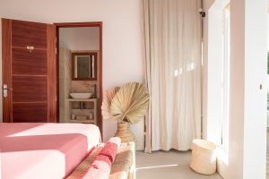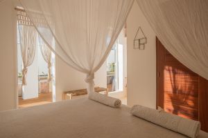Das Bett ist 160 cm breit und mit exquisiter Bettwäsche ausgestattet. Gute Matratzen, Bettwäsche aus Leinen, ein Ventilator und sogar eine Klimaanlage sorgen für einen ruhigen und erholsamen Schlaf.