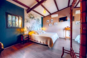 Die Zimmer heißen: Océan, Créole und Vulcan und sind alle unterschiedlich gestaltet. Im Zimmer Océan kann man das Bett teilen, also zwei /kleine/ Einzelbetten daraus machen.