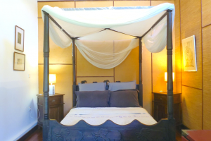 Longanis Lodge war unser absoluter Favorit mit der exotischen, ganz persönlichen Möblierung, dem dschungelähnlichen Garten und dem genialen „Baumhaus“ in einem architektonisch faszinierenden Haus! Jacquelines selbstgemachte Marmelade war bis zum Urlaubsende mein Gaumenschmaus am Morgen, zum Abschied gab es noch rosa Pfeffer für uns aus dem Garten, überhaupt war es für uns die persönlichste Begegnung, auch wenn wir nicht oft Kontakt hatten. Man hatte nicht das Gefühl von Ferienwohnung, sondern eher von „wir wohnen hier“ – und die Hähne und Hunde gehörten für uns zur ländlichen Geräuschkulisse. (Überhaupt hat uns der Osten mit seiner üppigen Vegetation, dem vielen schwimmbaren Wasser und dem weniger touristischen Flair ganz besonders gut gefallen!)