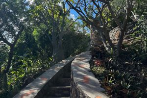 Ganz neu: etwas weiter oben finden Sie nun eine eigene, nicht einsehbare Sonnenterrasse mit einem tollen Blick, wirklich sehr exklusiv. Eine angelegte Treppe führt von hier hoch zu dem kleinen Aussichtspunkt mit einem Bänkchen. Genießen Sie den Abend völlig ungestört inmitten der tropischen Gewächse.