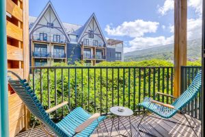Fast alle Apartments haben einen Balkon. Entweder mit Blick zum Pool oder in die Berge und es gibt einige mit Meerblick.