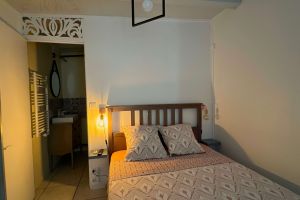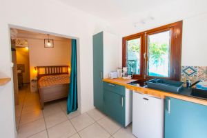 Diese nette, recht einfache Studio liegt im Hof des Anwesens, hinter dem Haupthaus. Es hat den Eingang von der eigenen, überdachten Terrasse aus.