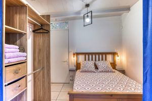 Im Anschluss daran folgt das Schlafzimmer mit dem Bett (140 cm) und einem Kleiderschrank.