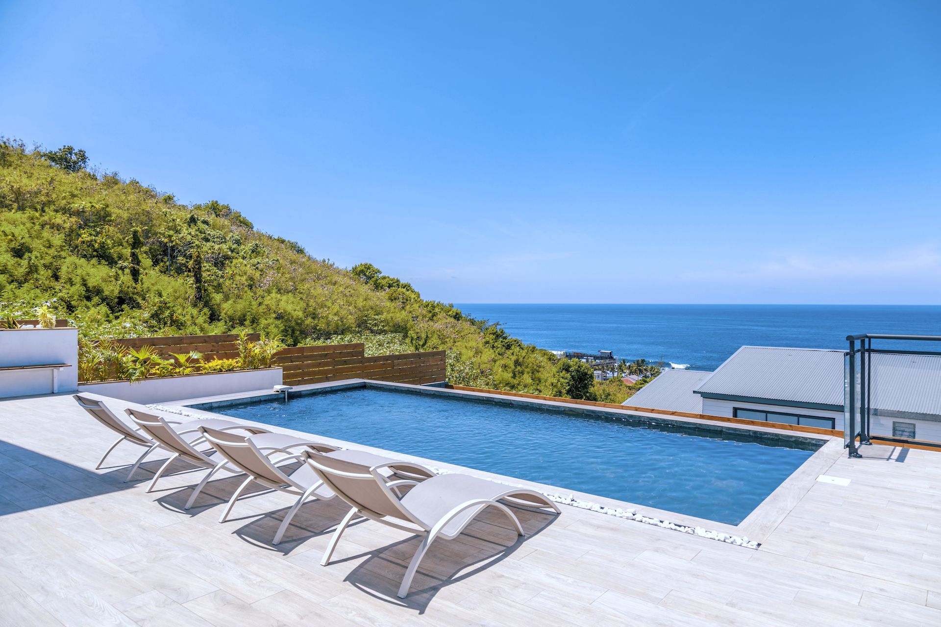Gar nicht weit von Saint Pierre (der heimlichen Hauptstadt des Südens) liegt die Gemeinde Grands Bois. Durch den Bau einer Umgehungsstraße wurde ein neues Wohngebiet erschlossen und es entstanden sehr hochwertige großzügige Villen mit einem fantatischen Meerblick. Unten im Dorf gibt es Läden, eine super Bäckerei und immer frisches Obst und Gemüse von lokalen Anbietern.