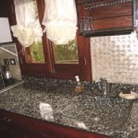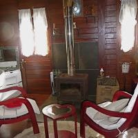 In der Mitte dann der Kamin und davor zwei Lehnstühle, um gemütlich dem Feuer zuzusehen. Da es im hiesigen Winter relativ frisch wird am Abend, steht neben dem Kamin das Holz dafür bereit.