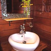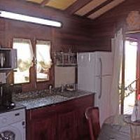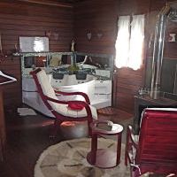 Das ganze Häuschen ist in dunklem Holz ausgestattet und es gibt quasi nur einen Raum plus das Badezimmer.