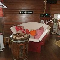 Mitten im Raum steht dann noch ein kleines Sofa und ein altes Fass, das als Tisch dient.