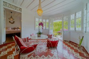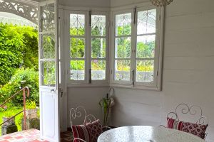 Wie der Name schon sagt: Villa Blanche - ganz in weiß, umrundet von einem herrlichen, typisch kreolischen Garten steigt man nach dem schmiedeeisernen Eingangstor die Treppen hoch zum Haus.