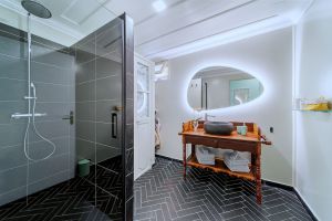 Es gibt insgesamt zwei großzügige, moderne Badezimmer mit Dusche sowie zwei Toiletten.