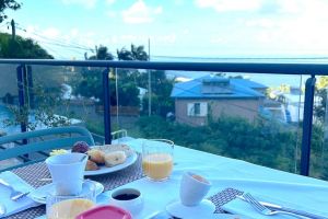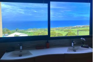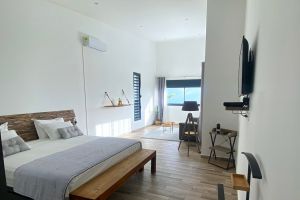 Das Gästehaus hat insgesamt 3 Zimmer und 1 Suite und es wurde neu renoviert. Die Bäder sind ausgestattet mit einer Dusche und manche zusätzlich eine Wanne. Die Zimmer sind auf zwei Stockwerke verteilt - eines am Pool und der Rest eine Etage höher. Der Ausblick ist grandios - von allen Zimmern aus sieht man das Meer und mit etwas Glück entdecken Sie in der Saison sogar von hier aus Buckelwale. In jedem Zimmer finden Sie ein bequemes Bett (160 x 200 cm mit hochwertiger Bettwäsche und eine Klimaanlage.