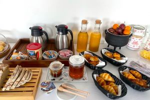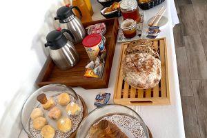 Im Erdgeschoss des Hauses ist auch das Esszimmer. Hier wird morgens ein reichhaltiges Frühstücksbuffet angeboten und nach Reservierung gerne ein Abendessen, das sog. Table d'hôtes.