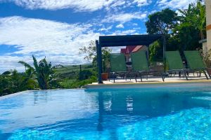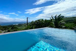 Der gepflegte Pool mit dem herrlichen Blick liegt vor dem Haus, neben der Terrasse. Sonnenliegen laden ein zum Entspannen und Erholen. Zudem gibt es nun noch einen Whirlpool für die Gäste.