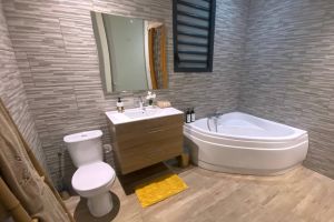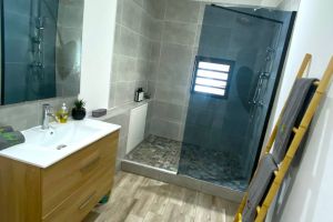 Petite Île, das ist ein kleines Dörfchen im Süden der Insel. Unterhalb der Hauptstraße liegt die meiner Meinung nach schönste Bucht der Insel: Grande Anse mit einem Natursteinbecken zum Schwimmen. Und oberhalb der Hauptstraße ist der kleine Ort in dem man alles findet was man braucht. Läden, Boutiquen und einen Supermarkt sowie eine Tankstelle. St.Pierre, die "größere Stadt im Süden" erreicht man auch in wenigen Minuten. Direkt am Haus stehen Parkplätze für die Gäste zur Verfügung.